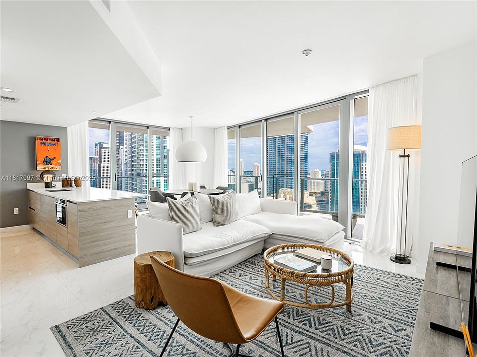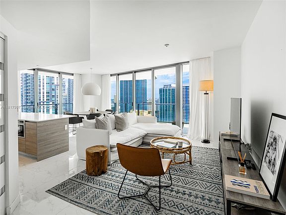 COURTESY Silvia Icaza, BHHS EWM Realty - Welcome to this exquisite, fully furnished corner residence in the heart of Brickell, featuring 2 bedrooms, 2 baths, and a spacious den/ office across 1,279 SF of modern elegance. Enjoy stunning skyline and ocean views from every room and a large wrap-around balcony ideal for relaxing or entertaining. The unit boasts porcelain floors, built-in closets, wood cabinets, Silestone countertops, and High-rating Glass/ Sliding doors. Residents enjoy private entry through a dedicated lobby. Full access to 5-star hotel services and amenities, including rooftop pools, gym, spa, lounge, business center, 24/7 concierge, and valet parking. Ideally located just minutes from the beach, Coconut Grove, and the best shopping and dining Miami offers, this is luxury urban living at its finest.