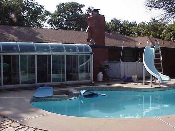 trees galore-quite secluded,but close in acreage by Lake Arcadia-**200sf more of a sunroom(separate H/A unit)NOT IN ABOVE SF. ingr pool/spa,so inviting. side-load garage.2NDdining could be 2nd liv Kit counters tile,tile floor,gas stove &oven,dish all redone in 2001.ROOF DONE JULY 2003!HORSES OK.