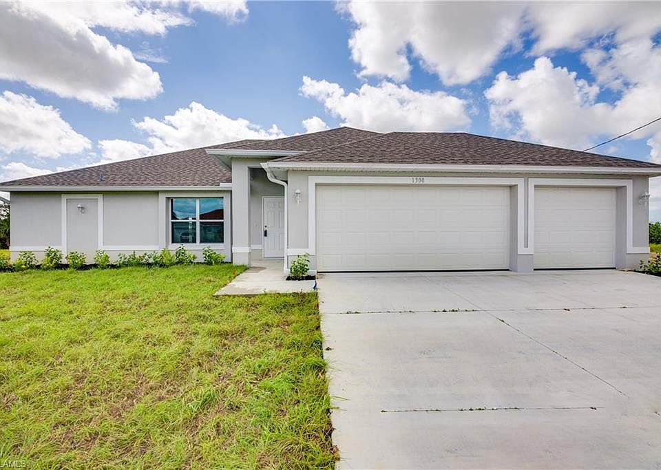 New Construction, water front home. Nestled in a quiet SW Cape Coral neighborhood, near shopping, dining, and schools, this nearly completed 4 bedroom, 2 bath with 3 car garage home is situated on a fresh water canal. Kitchen will feature stainless steel appliance package just before Closing. Granite counter tops throughout. Tile in main living areas, and carpet in bedrooms. Extend your Florida lifestyle on the spacious lanai, with room for a pool!