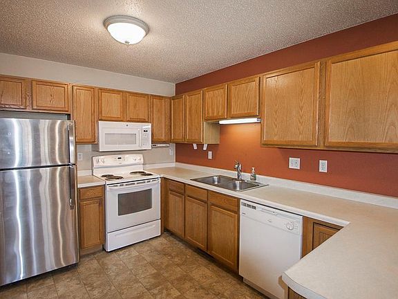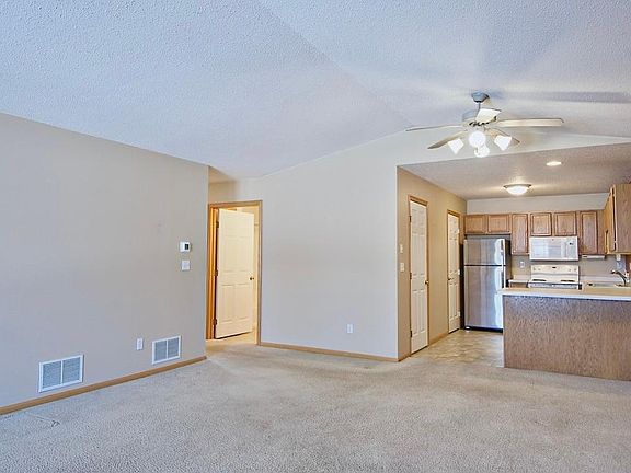 Wonderful opportunity awaits in this one level quad home featuring 2 generous sized bedrooms and 2 full baths. Open living space with abundance of natural light is perfect for downsizing or just starting out! This home also offers a large owner's suite with private bath and walk in closet, easy access to main floor laundry, accessible 36+ doors and 42+ hallways, and insulated and clean 2 car garage. Located on quiet dead end street within walking distance to shopping, restaurants, community center, trails and more.