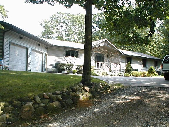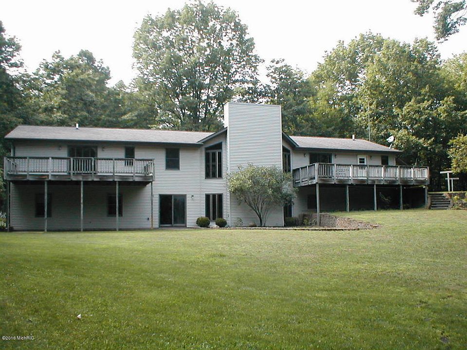 Very Large Custom built Ranch on 10 beautiful very private wooded acres. Located at the end of a private street with a park like setting in the front yard. This is a very hard to find location for the Buyer who wants private, wooded property but yet only a half hour from Grand Rapids. Main floor has 4 bedrooms and 3 baths. Living room has a beautiful stone fireplace set up as wood burning but currently has a gas log in it. Hardwood floors, carpet and Tile throughout home. Very large kitchen with oak cabinets. Walkout basement with huge open Family/Rec room with bar and fireplace. 2 more bedrooms in the basement and a half bath. In floor heat in basement and forced air furnace for main floor all connected to a Wood boiler.2 stall Garage and 30X40 pole barn. Home Warranty Included