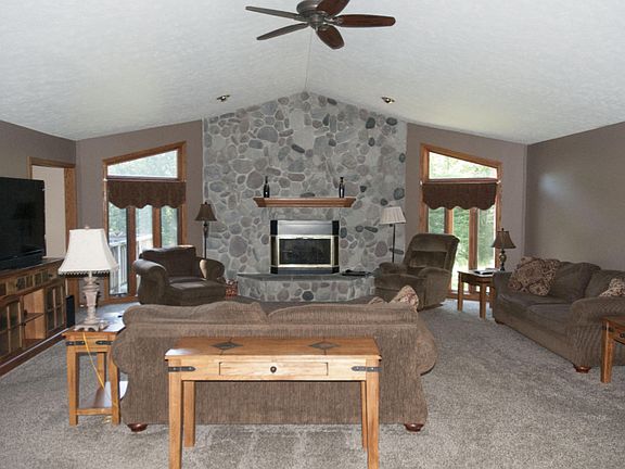 Very Large Custom built Ranch on 10 beautiful very private wooded acres. Located at the end of a private street with a park like setting in the front yard. This is a very hard to find location for the Buyer who wants private, wooded property but yet only a half hour from Grand Rapids. Main floor has 4 bedrooms and 3 baths. Living room has a beautiful stone fireplace set up as wood burning but currently has a gas log in it. Hardwood floors, carpet and Tile throughout home. Very large kitchen with oak cabinets. Walkout basement with huge open Family/Rec room with bar and fireplace. 2 more bedrooms in the basement and a half bath. In floor heat in basement and forced air furnace for main floor all connected to a Wood boiler. 2 stall Garage and 30X40 pole barn. Home Warranty Included