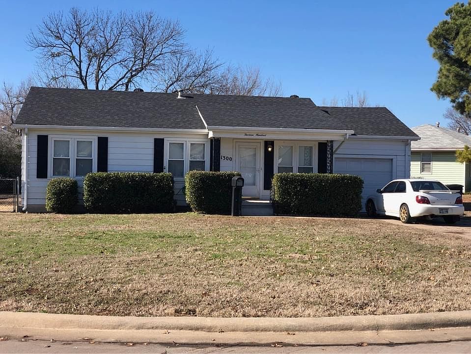 3 BR / 1 Bath (Shower only) with attached garage. Central gas heat and A/C, washer and dryer hookup, dishwasher & range, ceiling fans, deck and gazebo. Hardwood floors through out with tile kitchen. Corner lot at 1300 Sherry Ln. Nice fenced yard. Clean and comfortable. $1200 per month with 1 yr lease, $800 deposit. Sorry NO Pets and no smoking in house. No smoking in house and no pets