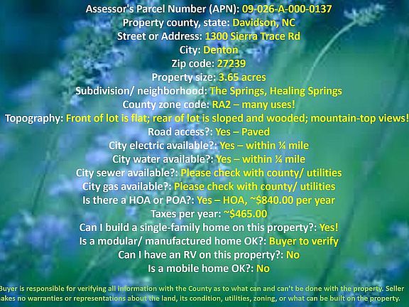 Price dropped to $29,000!!! This will not last long!! ~~~~~~~~ Call/ text Ben anytime at 480-550-8909 or email me at ben.nikolaus@wholesalelandandlots.com to get this deal while it lasts! ~~~~~~~~ Do not click the "contact agent" button, just call, text or email me directly, scroll down to "Listing provided by owner" section! ~~~~~~~~ 3.65 acres near High Rock Lake, North Carolina priced at a CRAAAZY 39% of market value! Will not last long! ~~~~~~~~ Perfect lot to build your dream home. ~~~~~~~~ This lot is priced well below market value and will not last long! DO NOT pay full market value when you can get this deal! ~~~~~~~~ Attention neighbors: this is a perfect opportunity to expand your lot at a great deal. ~~~~~~~~ Lot is located near beautiful High Rock Lake, North Carolina. Enjoy camping, lake swimming and boating, many nearby golf courses, hiking, and the list goes on! ~~~~~~~~ Lot is located in The Springs gated community. Amenities include private paved community roads, walking trails, locked RV/ boat storage, mountain top clubhouse, pool, hot tub, tennis courts, and more! ~~~~~~~~ See some amenities here: ~~~~~~~~ https://www.thespringsathighrock.org/facilities/ ~~~~~~~~ Perfect lot to build your dream home on 3+ acres! ~~~~~~~~ Call/ text Ben anytime at 480-550-8909 or you can also email me directly at ben.nikolaus@wholesalelandandlots.com ~~~~~~~~ Get this deal while it lasts! ~~~~~~~~ Visit my website at www.wholesalelandandlots.com for my current listings. ~~~~~~~~ *Disclaimer: Buyer is responsible for verifying all information with the County as to what can and can’t be done with the property. Seller makes no warranties or representations about the land, its condition, utilities, zoning, or what can be built on the property.