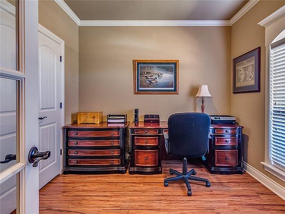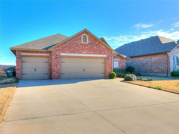 Come on out and see this beautiful former model home nestled in Cedar Lane, Easy access to Highway 9 and OU. Clubhouse and park coming soon, Three bedrooms PLUS OFFICE , 2 bathrooms with 3 car garage, home has stone corner fireplace with TV mount, new carpet in the bedrooms, Open concept family room and kitchen which features antiqued white cabinetry. Master bedroom has coiffured ceiling and ceiling fan. The two car garage is heated/cooled with stained concrete flooring. This home also features an exterior above ground storm shelter (which can be moved) with large patio and fenced yard.