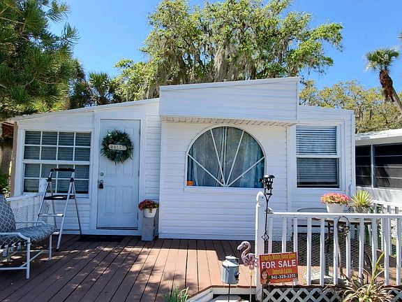NEW VINYL SIDING IN PROGRESS AND ALMOST COMPLETED! Country setting resort all age gated community. Bring the family and your fur babies! You can vacation up to 6 months a year and lots of potential for investors. Rent when you are not using it and pay for your expenses and so much more! This home is river front, sit on your front porch across from Myakka River. Take a lunch and a fishing pole, maybe throw a kayak in right across the street. Yes...you will probably see some gators. Bring your suitcase to this 2 bedroom 1 bathroom home that comes turnkey with a detached shed, front porch and back patio area. Second bedroom was added to the back of the enclosed sunroom. There's a nice wooded back yard, stone patio for sitting area, grill and this home is near the end, away from the Rv section. Roof has been reseal recently, stove is propane, 2 portable ac units and dehumidifier. Kitchen has a tropical, rustic look with metal ceiling. Everything you need to move right in. Call/Text for a tour Deborah Leased land is $768/ month which includes garbage (dumpster on site) and lawn maintenance. Electric and water paid at time rent is paid through the community. Ramblers Rest RV Resort is an all-age RV park in Florida located along the Myakka River in Venice. Tranquil, wooded resort setting, where you're still just minutes away Sarasota Florida near the best beaches. Amenities include: Clubhouse, Shuffleboard, Swimming Pool, Whirlpool/Spa/Hot Tub, Fishing Creek / Lake / Canal / River or Ocean Frontage, Fitness Center, RV Storage, Pet Friendly, Restroom/Shower Facilities, Laundry Facilities, Boat Ramp, Picnic/BBQ Area, Playground, Volleyball, Basketball, Horseshoes, Ballroom/Banquet Hall, Game Room/Billiards, Library, Bocce Ball,Private Mailbox/Mail Center, dog park All listing information is deemed reliable but not guaranteed and should be independently verified through personal inspection by appropriate professionals. Integrity Mobile Home Sales cannot guarantee or warrant the accuracy of this information, measurements, or condition of any property. Measurements are approximate. Lot rent is subject to change.