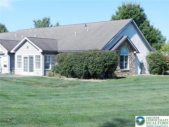 Quaint 55+ community of Upstream Farms, convenient to Sullivan Trail shopping centers and EZ access to Rt. 33 at Tatamy, PA. This home is an end unit with adjacent landscaped open space area. Additionally, the interior is newly painted and move-in ready. The home includes a modern kitchen with satainless steel appliances, dining room, livingroom with gas fireplace, sunnroom and adjacent rear patio, 2 bedrooms (Master bedroom has a walk-in closet and custom shelving), large bathroom, laundry, half bathroom and a welcoming foyer from the covered front porch. The Community Association provides a community clubhouse with a fitness center and entertainment facility with kitchen. This home is in Excellent Condition. Call NOW!