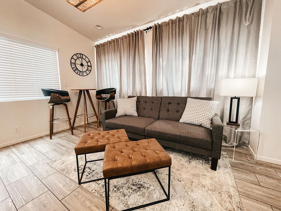 Adorable one bedroom and one bathroom Tiny Home available for a month to month or extended stay option. This unit has a long list of upgrades, which include: a tank-less-on-demand water heater, dual HVAC system, tile shower, stone countertops, high ceilings, vinyl plank flooring, and much more. The kitchen offers all stainless steel appliances, including a gas range, microwave, refrigerator with built-in ice maker and water dispenser, dishwasher, and oversized farm front sink. Extend Stay: $2,800.00 - Fully Furnished option Includes all utilities and complimentary wifi, kitchen supplies, and weekly linen exchange. Monthly rate: $1550.00 Security deposit: $1550.00 Includes water, sewer, trash with electric and propane posted on account monthly We are conveniently located in a beautiful community right on the Truckee River just 1 mile from downtown. Our community has 2 laundry facilities on-site for residents only, private river access, a community garden, and multiple recreational areas. Month to month lease. The monthly rate is $1550.00 and the Security deposit is $1550.00 which includes water, sewer, trash with electricity, and propane posted on the account monthly. $25 application fee.