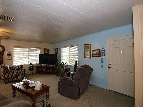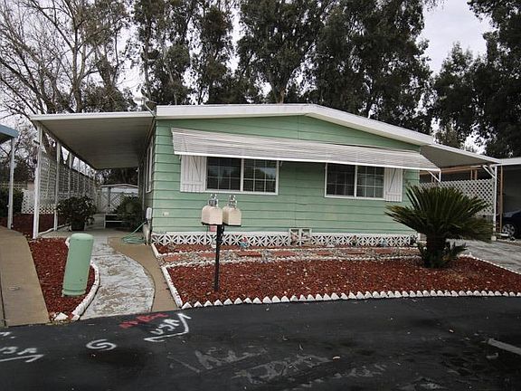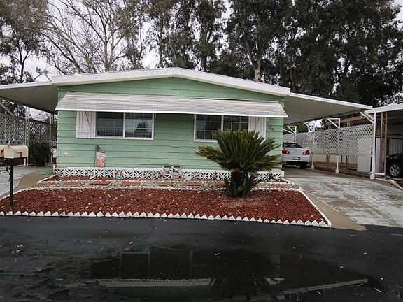 Charming 2 bedroom 2 bath home in Kings River Mobile Home community with spacious living room and dining area with built in hutch. The cheerful kitchen and baths have updated laminate flooring. There is newer carpet through out the house, and a cozy den/study perfect for relaxation or home office space. This home also includes a convenient indoor laundry, duel pane windows, security screen doors on front and back, and is situated in a oversized fenced cul-de-sac lot that backs up to the Kings River with covered parking, patio area, and various citrus trees. Call today for your private showing!