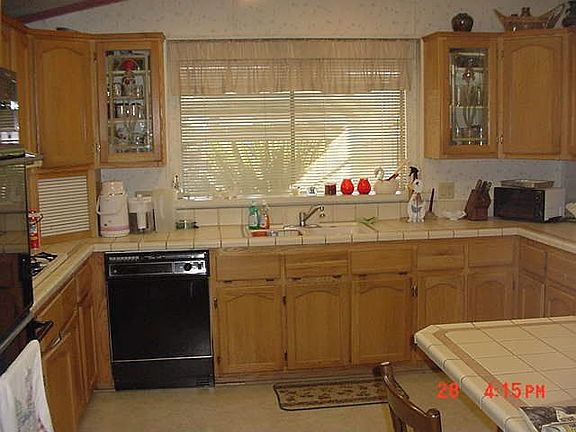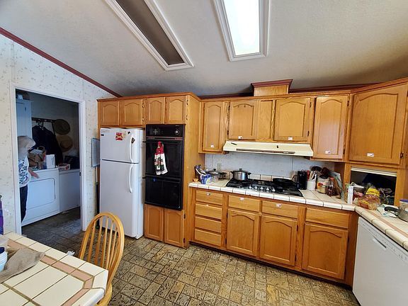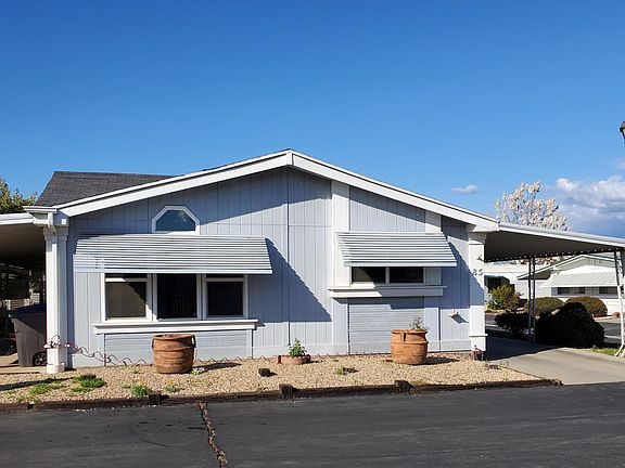 55+ -Live Gated Community Senior park at Kings River Mobile Home, with large windows letting in natural light. 3 bedroom, 2 bath with Vaulted ceiling and skylights throughout, large master with his and her sinks and walk-in closets. Indoor laundry with soaking sink. Nice kitchen with extra cabinets. Master bath has separate soaking tub and walk-in shower. Storage shed. Carport has privacy . Large covered patio area. Well cared for, must see!