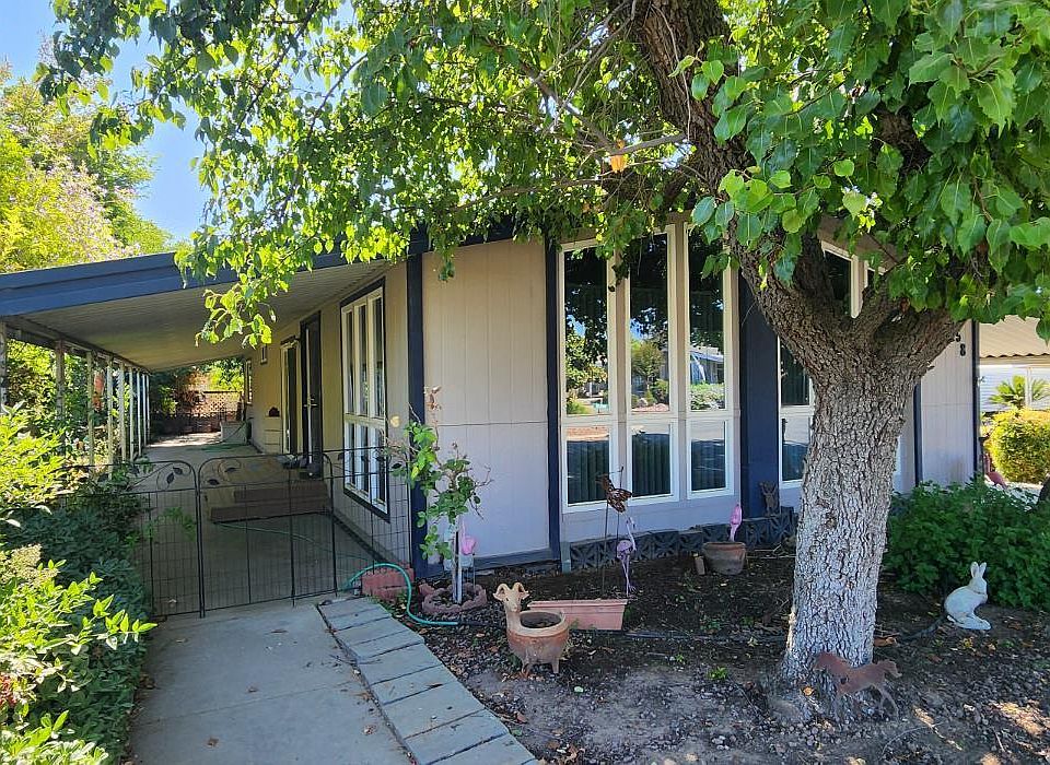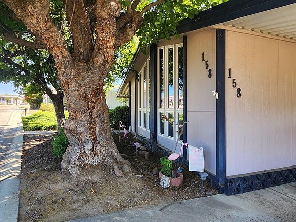 Live in this lovely Senior (55 plus) gated park, next to the Kings River. This home is on a corner lot, lots of windows for natural light. 2 bedroom, 2 bath, living room / dining room (built in hutch) and family room open to the kitchen, refrigerator included. Owners suite, indoor laundry room (washer/dryer included). Covered patio on one side and carport on other side with storage shed. Park amenities include, pool, club hose, RV storage, green area and gated security. Call to today to make your appointment for a private showing.