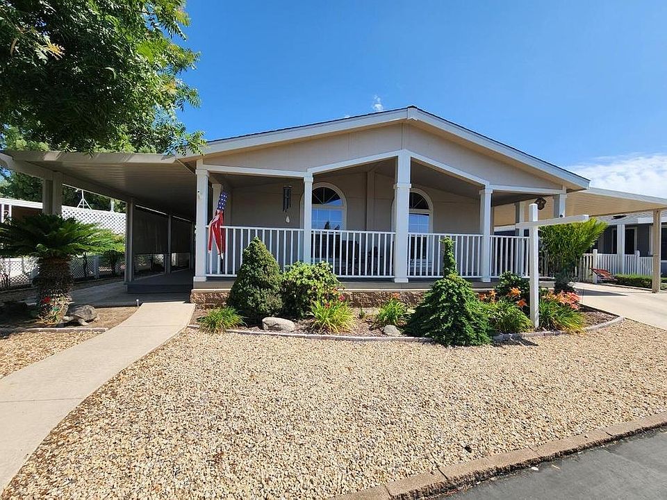 Experience life in this charming, gated community exclusively for seniors (55+), nestled alongside the beautiful Kings River. Take advantage of the fantastic amenities at the Kings River Manufactured Home Community, including a refreshing pool, community center, scenic green spaces, RV storage, and more.This spacious 2-bed, 2-bath immaculate home, with 1384 sqft., built in 2005, will be truly move-in ready by September 1st. The home will include all the appliances such as New Microwave, New Dishwasher, Stove, Refrigerator, Washer and Dryer. Unwind on the delightful front porch while soaking in the serene outdoor atmosphere. Enjoy numerous upgrades, including new carpeting, a one-year-old roof, sun shades, gorgeous skylights, and spacious closets. This is the ideal place to make your new home!