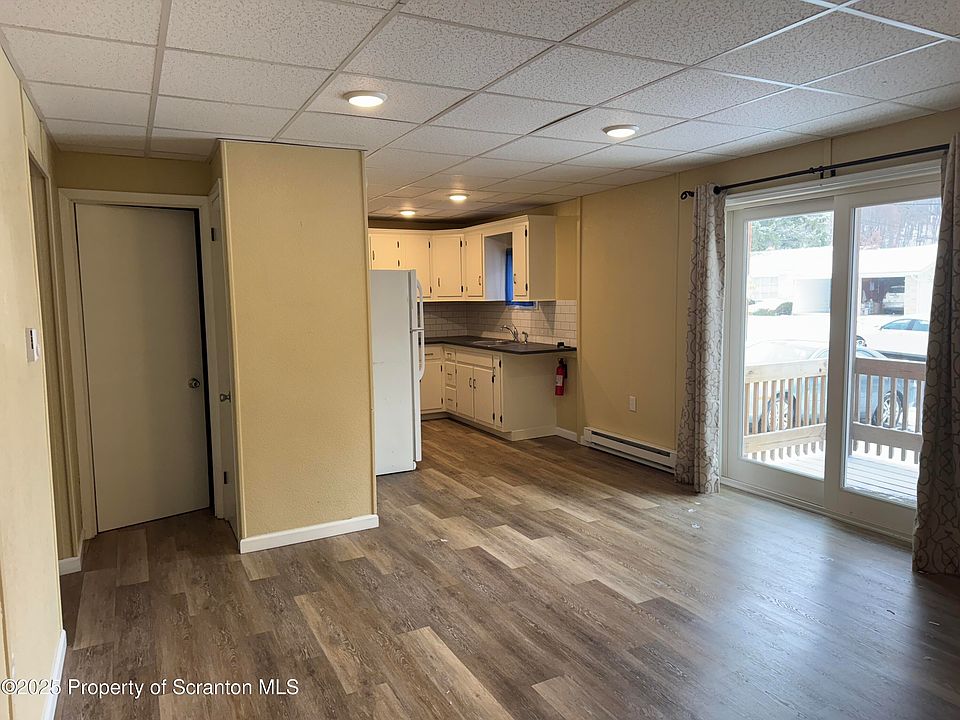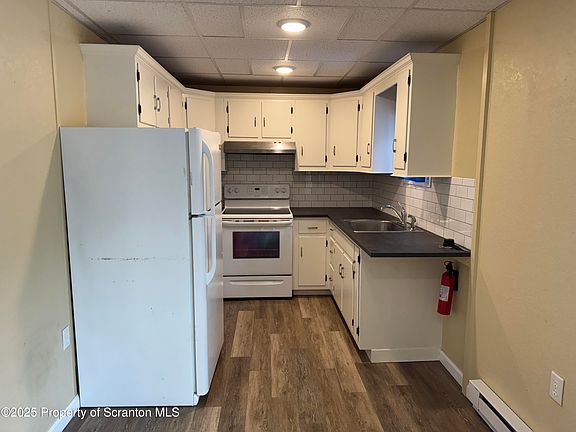 Apartment 2B. Clean and modern 2 bedroom living. Apartment features vinyl floors throughout and tile in Laundry room. 1st floor apartment has assigned parking spot right outside your door. Great deck/patio for extra outdoor space. Included is a refrigerator, stove and air conditioner. Washer/dryer hookup in walk in closet in bedroom. Plenty of closet space.Lease Term Mnths: 12NO PETS, NO SMOKERSLandlord Pays: Water & sewer., Tenant Pays: Electric, electric heat, $250/year garbage fee