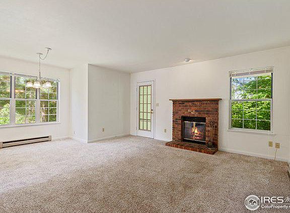 Don't miss this affordable condo! Super private location backing to an irrigation ditch and mature trees and across the street from an entrance to Rolland Moore Park and just blocks from Spring Creek Bike Trail and CSU! Main floor living with newer carpet and interior paint, updated bath with newer shower surround and wood burning fireplace. Primary bedroom has separate sink and direct access to bath. Enjoy the serene location from the private patio.