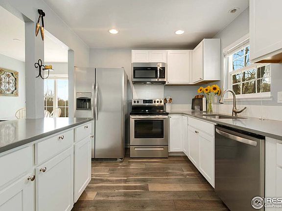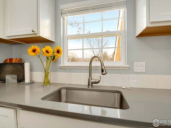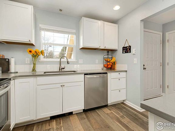 Beautiful 2 bedroom one bath condo with additional vanity/sink off of master bedroom. End unit second floor unit offers lots of privacy, with back, front and side of home surrounded by open space. Fort Collins trail system out your front door.Balcony overlooking Greenbelt feels like living in a tree house. Over $30,000 of upgrades have been done since 2018. All new stainless steel appliances, white cabinets, ground stone counter tops and backsplash and recessed lighting make this the perfect kitchen. Wall has been opened up between kitchen and living room with a bar making this a great home to entertain in. Light fixtures, ceiling fans, windows and blinds and grey vinyl plank flooring are all new as well as new bathroom vanities and fixtures. The icing on the cake is the new hot water heater and baseboard heat.