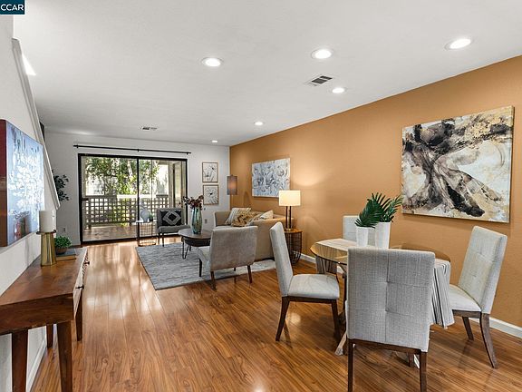 Experience Walnut Creek living at its finest in this 2-bedroom, 2.5-bathroom townhouse. Complete with a 1-car garage and private laundry, it offers both convenience and comfort. Situated within the boundaries of top-rated Walnut Creek schools and just steps from the Iron Horse trail, enjoy easy access to Downtown Walnut Creek and beyond. Plus, with BART and freeways nearby, commuting has never been simpler. Step inside to an inviting open living space featuring a fireplace and spacious balcony. The adjoining dining area seamlessly connects to a fully equipped kitchen, complete with a garden window. Additionally, appreciate the ample storage space, recessed lighting, and attractive wood-look flooring throughout the home. A powder room completes the main level. Upstairs, discover two spacious primary suites, each with its own bathroom, vaulted ceilings, and mirrored closet doors. One suite even features its own balcony. Additionally, find a laundry closet and extra storage space. Nestled in a tree-lined community, beat the heat this summer by lounging poolside at the shared pool.