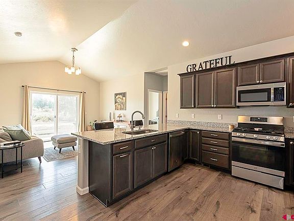 Located in the well-established Bear Creek subdivision, this newly built home by Ridgeline offers a practical, well-designed layout in one of Montrose’s most desirable neighborhoods. The home includes 3 bedrooms, 2 full bathrooms, and two separate living areas—ideal for flexible living, guests, or a home office. The kitchen features solid-surface countertops, custom cabinetry, and modern appliances. The open floor plan brings in natural light and connects easily to both living spaces. The primary suite includes a walk-in closet and private bathroom. Two additional bedrooms are located on the opposite side of the home, providing privacy and convenience. The backyard is wide open with no immediate rear neighbors and offers excellent views—perfect for outdoor enjoyment or future landscaping plans. The patio adds usable outdoor space. Why wait to build? This move-in ready home offers modern construction, quality finishes, and a great location without the delays or decisions of a custom build.