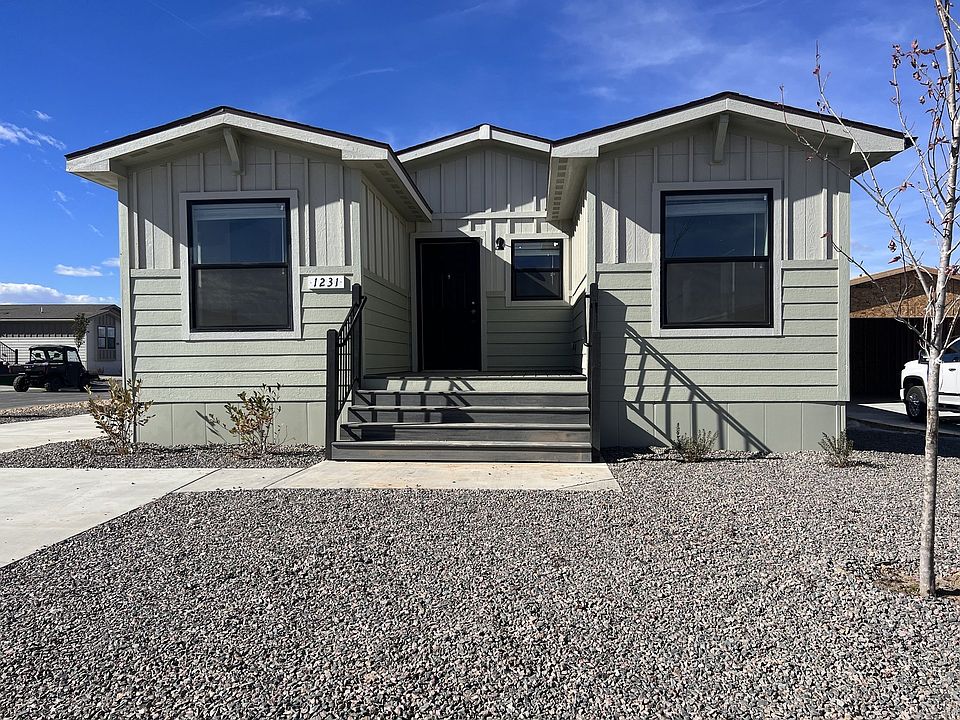 Welcome to Fort Lupton's Premier Community, where the perfect blend of modern living and an active, engaging lifestyle is yours to enjoy. This brand-new manufactured home offers all the comfort and style you desire, with ample space for an extraordinary living experience. As you step inside, you'll immediately notice the open-concept design, allowing natural light to fill the living spaces. The kitchen boasts a gas range and a charming farm sink, and it features a big pantry, providing abundant storage for your culinary needs. With 3 spacious bedrooms, this home exudes character with built-in bookshelves and cozy nooks throughout, perfect for those moments of relaxation or creative inspiration. The Primary Suite is a true retreat, featuring a walk-in closet and an inviting walk-in shower. The secondary bath is equally impressive, with double sinks, a bathtub for relaxation, and ample storage space. Situated on a corner lot backing the park area, this home offers serene views of the mountains from your backyard. It's the ideal setting for outdoor enjoyment and relaxation. Photos are of the model, colors may vary.