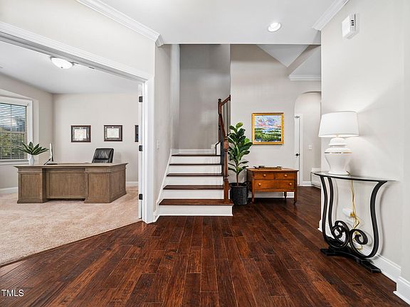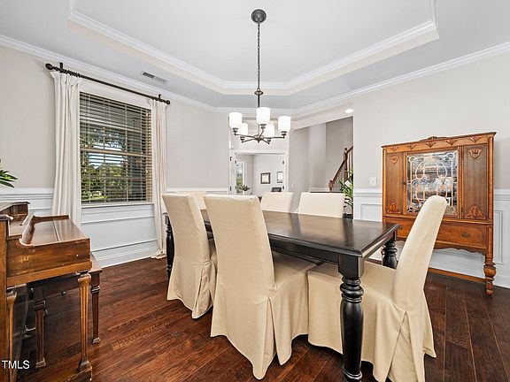 Stunning 4-Bed, 3.5-Bath Home in Desirable Kildaire Crossing! Welcome to this beautifully maintained home nestled on a flat lot in the sought-after Kildaire Crossing neighborhood on a cul-de-sac street. Offering a perfect blend of modern comfort and thoughtful design, this home is ideal for families seeking space, style, and convenience. Situated in a prime location with easy access to Route 1 and I-540, this home makes commuting and accessing nearby shopping, dining, and entertainment a breeze. Inside, the spacious family room features a charming fireplace, complete with custom built-in cabinets, providing both warmth and style. The open-concept layout seamlessly connects the kitchen and dining areas, perfect for everyday living and entertaining. A finished mudroom area adds an extra touch of convenience, offering a functional space for organizing outdoor gear. The large, finished bonus room on the third floor adds versatility, whether you need a playroom, home office, or entertainment space. Custom Elfa shelving in the garage provides organized storage for all your belongings. Step outside to your private outdoor retreat. The beautiful screened porch, is spacious and is equipped with a gas log fireplace, offers a cozy, year-round space to relax, while the adjoining deck provides the ideal spot for grilling or enjoying meals outdoors. This home truly has it all, from the spacious interior to the fantastic outdoor living spaces. Close to Crowder Park, Jack Smith, and Hemlock Bluffs! Don't miss the opportunity to make it yours—schedule your tour today!