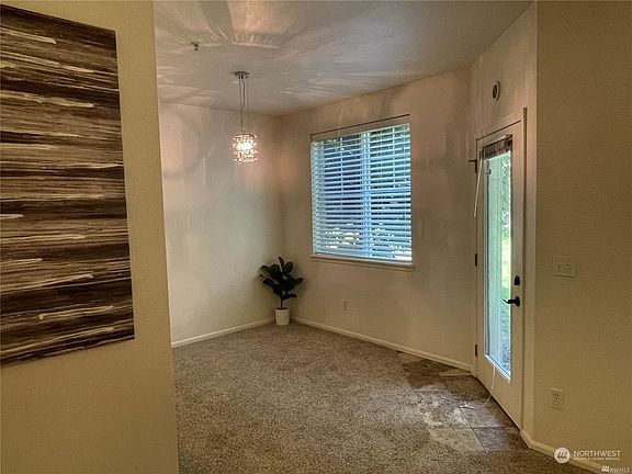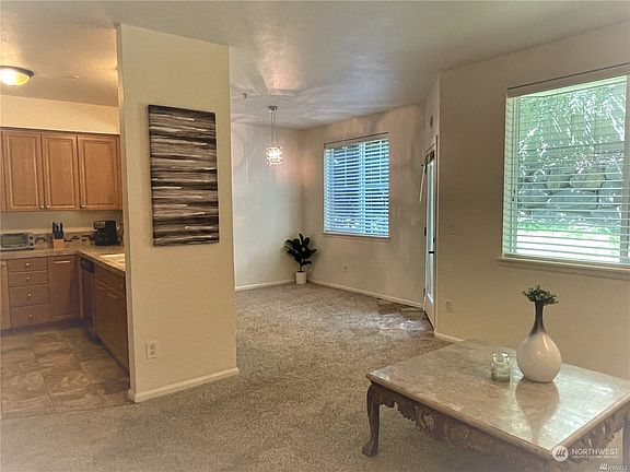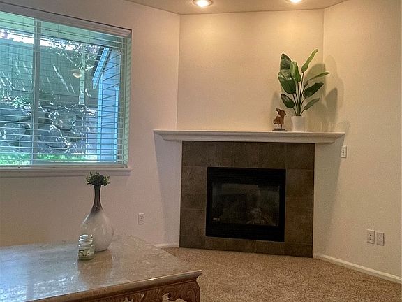 Don't miss out on this amazing 830 sq ft, 2 bed, 1.75 bath home. This ground level unit has no stairs to get inside and is FHA approved! Beautiful tile entry, open floor plan and radiant floor heating. New hot water tank, mechanical room is brand new! Beautiful gas fireplace in the living room. The kitchen has updated tile counters, back splash and flooring! Lots of cabinetry & counter space with new SS appliances that stay. New full size washer/dryer. 10' ceilings with extra large windows! Lots of privacy in the back yard with a spacious patio. Amazing location close to I-5, I-405 and Park & Ride for your commute anywhere. Covered parking right outside! Up to 2 dogs no rental cap and no special HOA assessments!