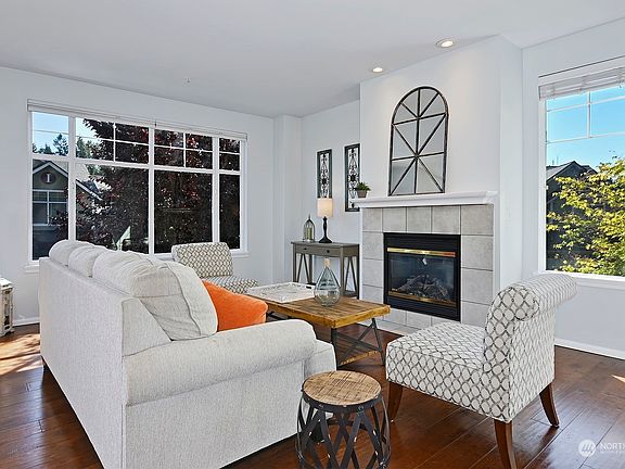 Townhouse with style! Fabulous end unit overlooking a Nature Preserve. Come home to warm, hardwood flooring with radiant heat. Enjoy natural light filled rooms w/ lots of windows. The kitchen is the heart of this home. Ideal for chef & entertainer alike, featuring a large center island, walk-in pantry, & lots of cabinets. All 3 bedrooms & laundry room located on upper level, including a primary bedroom w/ double closet & a spacious private bath. Oversized (790 square feet!) garage allows for 3 vehicles, additional storage, or shop space. Great access to all major Hwys, future light rail, Park N Ride & easy walk to Lake Stickney w/ dog park & walking trails. An ideal space for comfortable everyday living & entertaining, come see it today!