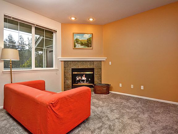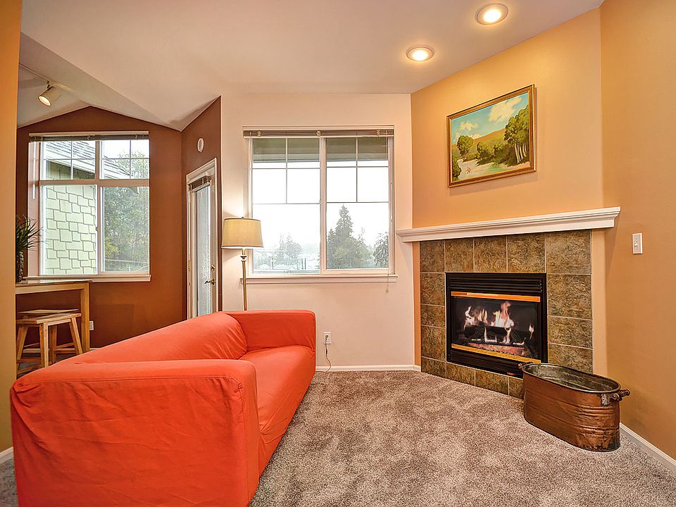 This top floor unit features a spacious living room & formal dining area with new carpet and a cozy gas fireplace to gather around. The open kitchen includes new laminate wood floors & lots of cabinet space for storage. Other great features include: vaulted ceilings; big, walk-in closet in the bedroom; radiant in-floor heating throughout; convenient in-unit stackable washer & dryer; covered deck that is perfect for enjoying your morning cup of coffee or unwinding after work; big storage closet off of the deck, and a community athletic court for your enjoyment! This unit comes with one covered & reserved parking space, and plenty of guest parking. Convenient to Boeing, public transportation, I-5 & Hwy 99. Well-maintained community & HOA.