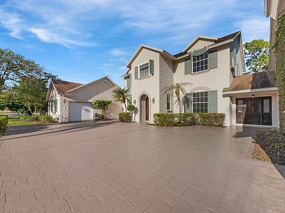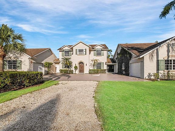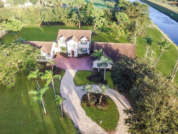 Extraordinary opportunity to own a custom, very private home situated on 1.67 acres in the heart of Boynton Beach. This one-of-a-kind home features a guest house with a kitchen, 3 bedrooms and 2 full baths. Stunning two story main house is ideal for entertaining with a living room, dining area, 4 bedrooms and 2.5 baths. The charming kitchen is a chef's dream with classic white cabinets, a double oven and snack bar. Luxurious master retreat offers a walk-in closet, jetted tub and a walk-in shower. A dramatic staircase, custom ceilings, neutral tile and a canal view complete this unique home. Attached garage/workshop with oversized doors is perfect for boats or RV's. Great outdoor living with 2 patios, balconies and an oversized private yard backing a golf course. No HOA.