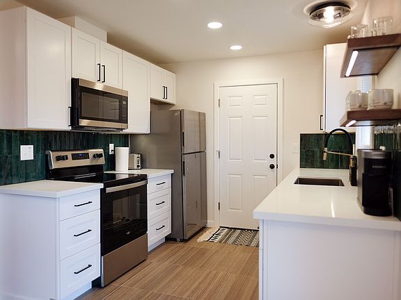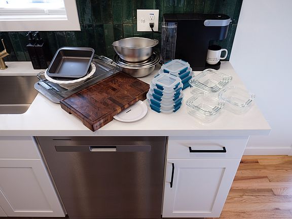 KITCHEN: This stunning kitchen has brand new, full size, stainless steel appliances including: a glass top stove, dishwasher, over the range microwave venting outdoors, and full size fridge. The kitchen includes all dishware, flatware, knives, cooking utensils, rice cooker, blender, instant pot, toaster, glass tupperware and more! Enjoy the under cabinet lighting and set the mood for unwinding and relaxation after work.