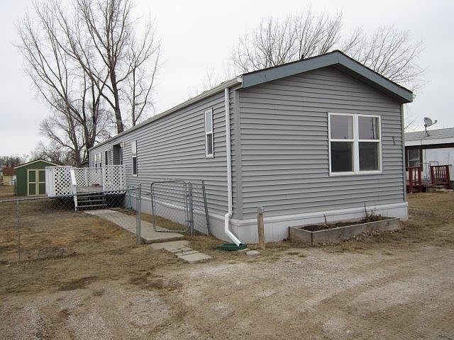 Lot rent $400/month. Great starter home on large lot that has been well maintained with many updates that include new maintenance free siding, flooring, & water heater to name a few. This home has 3 bedrooms & 2 baths - the master is very large & master bath has dual sinks, garden tub & separate shower. Located in Palmers Mobile Home Park close to the base or Minot. The kitchen has lots of cabinets & the sliding glass doors lead out to a large deck perfect for grilling & entertaining. The yard is fenced perfect for children & pets. There is also 2 good sized sheds - great for storage or could be a work shop. This property is well worth seeing.