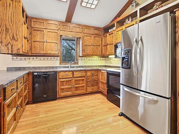Enjoy the peaceful driveway leading you to your home retreat! This home has been extremely well cared for, and is spotless throughout. This home features maintenance-free siding, a deck with awesome views of the wooded acres, a charming, covered front porch, attached garage, plus a heated/insulated & A/C in huge pole barn. Need a workshop or a place to store all your toys? This pole shed will provide tons of space, plus there is a covered lean-to on each side for additional storage.All living facilities on the main level, laundry & mudroom off the garage, 2 bedrooms on main level w/plenty of closet space. Open main area with vaulted ceilings. Finished LL walks out to the backyard. Rest easy with a brand new septic installed April, 2020. Trails through the woods surrounding the property, and plenty of wildlife right out your back door. Located in Becker school district.