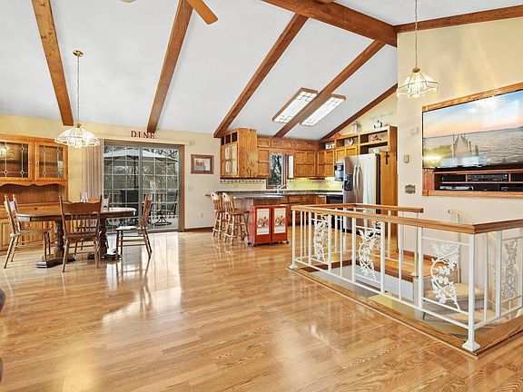 Enjoy the peaceful driveway leading you to your home retreat! This home has been extremely well cared for, and is spotless throughout. This home features maintenance-free siding, a deck with awesome views of the wooded acres, a charming, covered front porch, attached garage, plus a heated/insulated & A/C in huge pole barn. Need a workshop or a place to store all your toys? This pole shed will provide tons of space, plus there is a covered lean-to on each side for additional storage.All living facilities on the main level, laundry & mudroom off the garage, 2 bedrooms on main level w/plenty of closet space. Open main area with vaulted ceilings. Finished LL walks out to the backyard. Rest easy with a brand new septic installed April, 2020. Trails through the woods surrounding the property, and plenty of wildlife right out your back door. Located in Becker school district.
