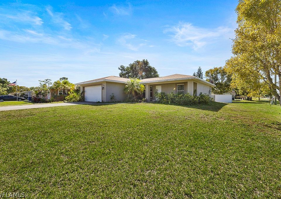 Welcome to Fort Myers Shores! Calling all first-time homebuyers and investors! No flood insurance needed at this well maintained 3 bedrooms, 2 bath home! Large, oversized corner lot with a fenced in back yard for entertaining! Plenty of space in your 2-car garage for your vehicles! Tile throughout main living room, kitchen and bathrooms! Newer carpet in the bedrooms! The kitchen is open to the living room for ease and has a large pantry, plenty of cabinets and brand-new granite countertops and stainless-steel appliances. The washer and dryer are conveniently located inside with a large storage closet for all your cleaning supplies. All bedrooms have ample closet space, and the primary bedroom has a large walk in. The primary bedroom features an en suite bathroom with walk in shower and linen closet. This home has been well taken care of with only 2 owners! High and dry without any hurricane damage! New roof put on June 2022! Located close to restaurants, shopping, grocery and lots of entertainment! Make your appointment today!