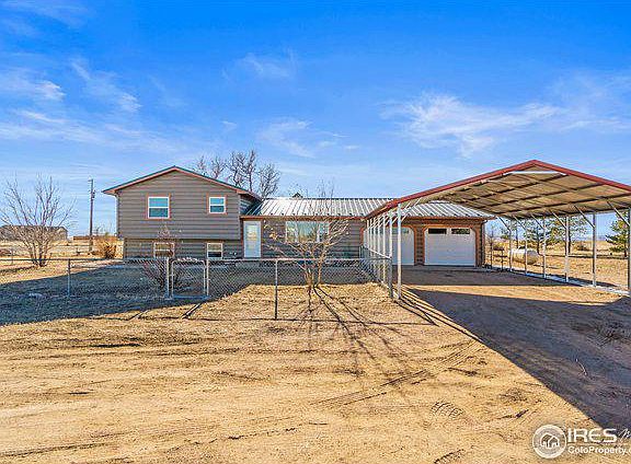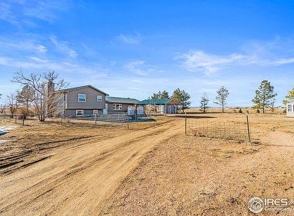 This acreage has it all! Spacious house, huge shop, livestock buildings, fenced pasture, mountain views & no HOA. Tri-level features laminate flooring throughout main floor, updated kitchen, large family room with wood burning fireplace & finished basement (could easily be 4th bedroom). Hot tub included. 2 car attached garage. Maintenance free exterior with metal siding & metal roof. 72X40 shop with two 12' overhead doors. Ready for horses & 4-H animals with 30X16 barn + loafing and storage sheds. Fully fenced pasture. Northern Colorado Water Tap.