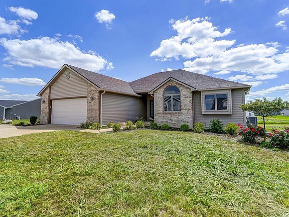 Custom home built in 2003 that has had a complete remodel. Sitting on a full finished basement the home offers 3 bedrooms, 3 full baths and a large size laundry room with utility sink. Primary Bedroom features a tray ceiling and 2nd bedroom has a vaulted ceiling. Brand new tear off roof, new HVAC, all new flooring throughout, freshly painted interior and exterior with updated light fixtures. This home is nestled inside Greyhawk subdivision with ample outdoor living space on the stamped concrete patio offering views of the pond. The living room offers a cathedral ceiling with views of the neighborhood pond. The basement is large with space for a theater area, game room and large amounts of storage. Ample space in driveway to comfortably park multiple vehicles. All appliances remain with the home, not warranted.