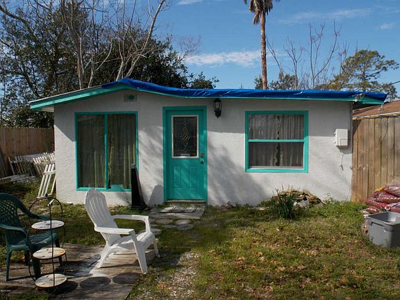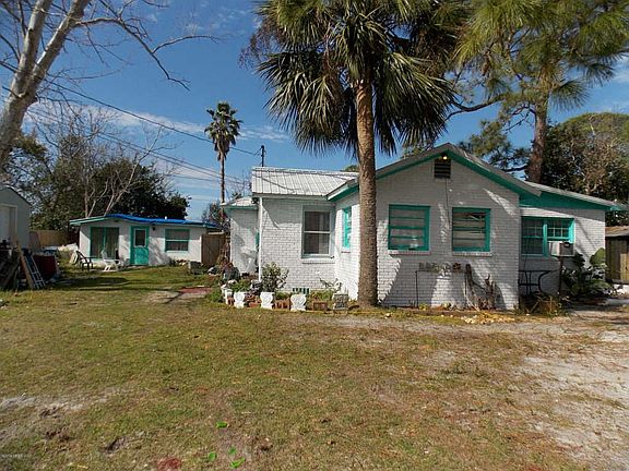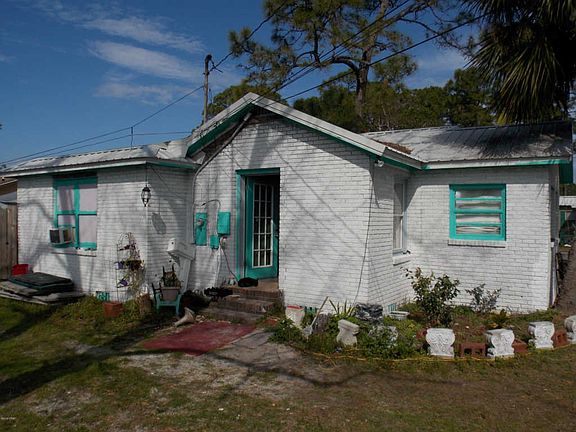 Investor Alert! Bring ALL offers! 1500 sq ft 4/2 Brick home with Newer Metal Roof. BIG YARD! 2 LOTS with Additional 400 sq ft Detached Guest Cottage only 1/2 mile to the beach! Next to Hutchison Beach Elementary. Chance to divide and build on corner lot! (up to $75K+ Value) Main home has wood floors, fireplace, enclosed front porch. Central HVAC, some newer windows and 2015 metal roof. Needs flooring, drywall, paint, updates, two windows, and more. Guest Home has appliances, window ac, tile floors. Ready to occupy while you renovate the main home! Or rent long term. All room measurements, square footage, and lot sizes are approximate. Sold AS IS. Home is built over lot line, will have to modify and have survey to separate.