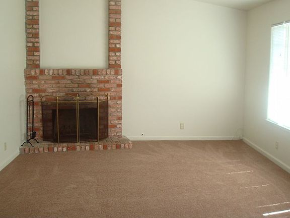 New carpet and freshly painted throughout the house. The rest of the flooring is tiled including bathrooms. Nice brick fireplace in living room. Master bedroom has a sliding door leading out to the backyard patio, which includes a brick barbeque pit. There is a two car garage as well as a driveway parking slab. Home is conveniently located to shopping and many services.