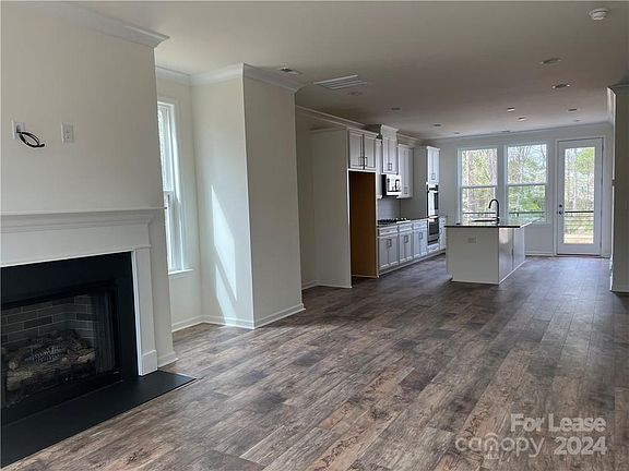 Almost new townhome located in the Ballantyne area! This end unit boasts a spacious layout with 4 bedrooms and 3.5 bathrooms, along with a 2-car garage. The main level features a guest bedroom that can also serve as an office. Upstairs, you'll find a bright living area and a gourmet kitchen equipped with white cabinetry, granite countertops, a gas cooktop, double wall ovens, a stylish white subway tile backsplash, and a large island perfect for meal prep. The casual dining area is ideal for hosting dinner parties and seamlessly flows into the gathering room complete with a cozy gas fireplace. Step outside from the kitchen to the deck, perfect for enjoying your morning coffee. The stunning Owner's Suite upstairs boasts a trey ceiling, a spacious walk-in closet, and an oversized shower. Down the hall, there are two additional guest bedrooms and a full bathroom. Plenty of guest parking is available right across from the unit. This home is move-in ready, complete with a refrigerator and blinds. Please note that the photos were taken when the home was brand new. 12 months minimum lease