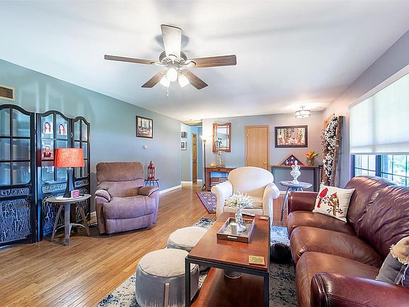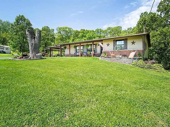 Updated ranch home on 5.65+/- acres in R-7 Schools. 3 sheds, 3 carports, lots of parking area, covered deck, patio, 4 bedroom, 3 full bath, finished walk out basement, wood stove, roof 3 years old, attic fan, relaxing front covered porch, large rooms. All kitchen appliances stay, breakfast bar, walk in pantry, hardwood and ceramic flooring. Total of 2,200 square feet of living space. Very nice home and property. Close access to I-55 and schools!