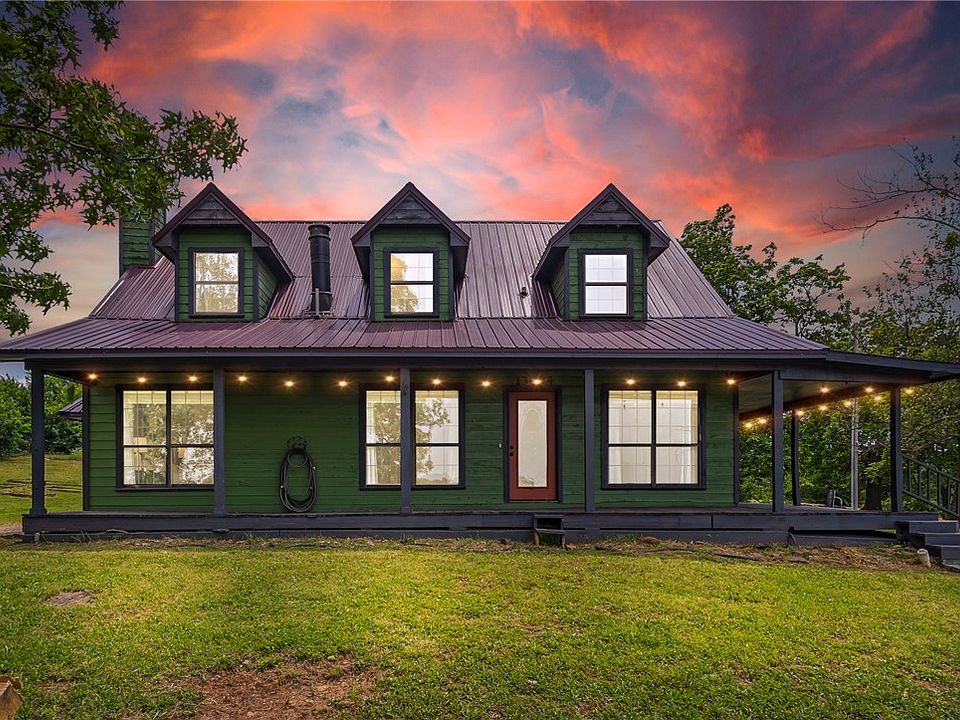Tucked on 2.11 private acres with mature trees and scenic mountain views, this 3-story craftsman offers peaceful seclusion just minutes from downtown Lincoln. Enjoy stunning sunrises from the semi-wraparound porch. The home already boasts key exterior upgrades—like cedar siding, a newer metal roof, and metal fencing—while still offering exciting opportunities for interior updates and personal touches. Inside, fresh paint, cathedral ceilings, and tall windows bring in natural light. A double-sided fireplace connects the living room and main-level suite with soaking tub, walk-in shower, and dual marble vanity. The eat-in kitchen includes a pantry and room to customize. Upstairs: 2 beds + full bath. Walkout basement includes bonus room, Razorback-themed half bath, laundry area, storm shelter, and oversized garage. Outside: hobby farm potential with chicken coop and egg-laying hens that convey. $4,000 preferred lender credit included!