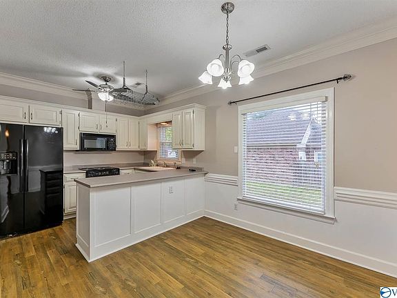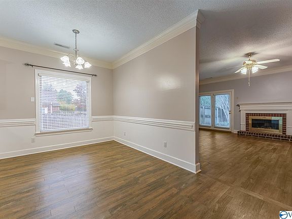 Better than new beautiful full brick ranch home with 3 bedrooms and 2 full baths. Interior has nine foot ceiling, fresh paint throughout, crown molding in the main living area including chair rail around the dinette. Home boasts an open floor plan with fire place in the living area that adds function and style. Kitchen has up-to date black appliances and a walk in pantry. Master bath includes a walk-in closet and a double vanity. New flooring throughout. HVAC replaced in November 2010, Gutters replaced in April 2010, and new floor to near ceiling windows replaced 2007. Privacy fenced back yard with trees and other landscaping details. Great schools with easy access to Redstone Arsenal.