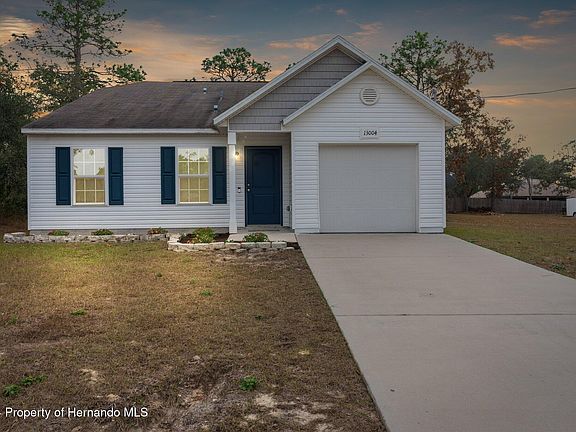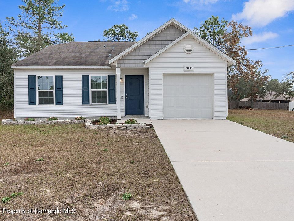This charming 2018-built home in the heart of Weeki Wachee, FL, offers the perfect blend of modern comfort and tranquil Florida living. Featuring 3 spacious bedrooms and 2 full bathrooms, new paint and new floors, this property boasts an open floor plan with soaring cathedral ceilings and abundant natural light throughout. The well-appointed kitchen includes 2018 black appliances, breakfast bar, large walk in pantry and plenty of cabinet and counter space, making it perfect for both cooking and entertaining. The primary suite offers a great view of the backyard, with an en-suite bathroom and a generous walk-in closet. Situated on a quiet street, on half an acre, the home is just a short drive from local shops, dining, schools and the stunning Weeki Wachee Springs State Park, known for its crystal-clear waters and famous mermaid shows. With a one-car garage and a lush, well-maintained yard, this home offers everything you need for comfortable and convenient living in the beautiful, Weeki Wachee!