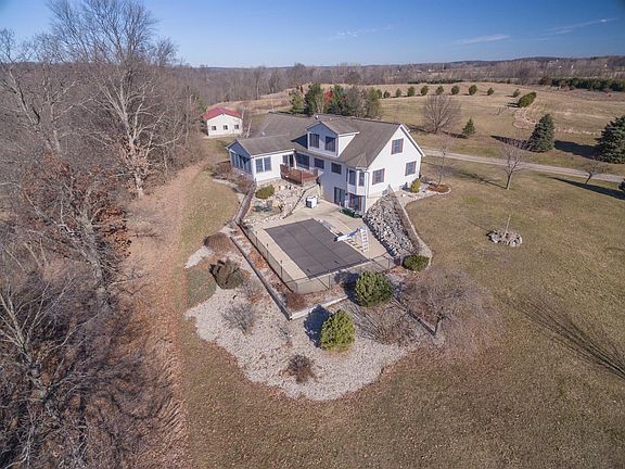 Beautiful home w/ over 1/4 mile on the River Raisin, all on 20 acres! The setting is gorgeous, the home is in impeccable shape! With 2,880 SqFt, 3 beds, 4 baths, full of natural light, this home has a lot to offer, including 24x24 custom built four season sunroom w/ high ceilings, field stone gas fireplace, handmade oak trim and gorgeous views overlooking the river and built-in pool! The large master bdrm includes, a bath w/ separate jetted tub/shower, w/ a perfect sitting area on the main lvl, which also includes a family rm, dining rm, lrg laundry rm & 1/2 bath. The lower level includes a kitchen, full bath, 2 bonus rms and storage area. The 2 1/2 car garage is finished. A 20x40 barn includes shop w/ concrete floor/elec and divided area for tractor. The horse barn has wtr/elec and 2 pastures. This property has natural gas and is a special find that offers more than can be listed here. Be sure to check it out soon!