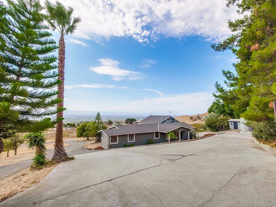 Spectacular views from San Jose to the bay on nearly 4 acres of gently sloping land! This unique property features a charming mix of space, serenity and modern styling. The open floorplan with vaulted ceiling is wonderful for relaxing or entertaining friends. The kitchen is modern with stylish upgrades including a huge island with under-counter refrigerators, and seating for 4. Huge bonus rec room above garage. This is an incredible spot to settle down and enjoy peaceful country living, while having quick access into Silicon Valley for employment or shopping. Zoning is HS-d1 allowing for a variety of uses including horses. Fruit trees include Fig, Persimmon and Lemon. Two driveway entrances - perfect for farm, construction equipment, RV or hobbies. Oversized garage with high ceilings and attached shop area including wash room. Additional structures possible or custom home site. Tankless hot water heater, wood pellet stove, UV water purification system plus a large laundry room.
