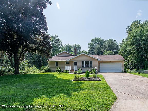 Welcome to this very spacious 4 bedroom, 2.5 bathroom home situated on 2 lots totaling 1.44 acres in Grand Ledge schools and Oneida Township taxes. The huge 26'x19' family room addition features a wood burning fireplace and gives lots of room to spread out. The large master bedroom is like a treehouse getaway overlooking the back yard. It has 2 big closets, an en suite bathroom, and its own deck. The 3 remaining bedrooms are good sized with ample closet space. Many rooms have beautiful hardwoodflooring. The kitchen is equipped with a reverse osmosis water filtration system. The basement features a generous recreation/family space partially divided by a 2-sided fireplace. The 12' x 12' screened porch transitions to a large deck that invites you outdoors to enjoy the yard's private wooded setting. Two outbuildings include a 168 square foot barn style shed and a 20' x20' shed that has water supply. This listing includes the extra lot, parcel #030-072-600-610-00 Lot 61.