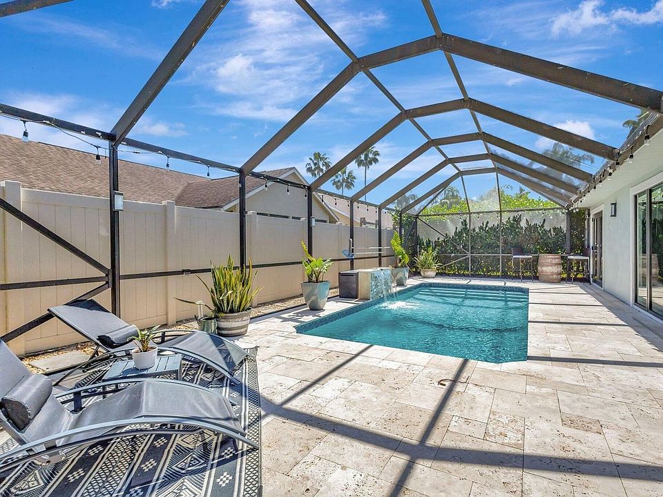 Courtesy of The Keyes Company Single family residence in desirable Wellington neighborhood of Meadowland Cove. 3/2 with heated pool. Fully fenced, impact windows & doors, updated kitchen & baths, natural slate flooring, and luxury plank in bedrooms. Kitchen features stone counters with stainless steel appliances. Large living areas. Screened in heated pool with fountain. Large pool deck perfect for entertaining. Want more? Go fish, boat, or relax right on Lake Wellington from within this community. A+ Schools.. Rent includes pool and lawn maintenance. Can be rented furnished, unfurnished, or semi furnished.