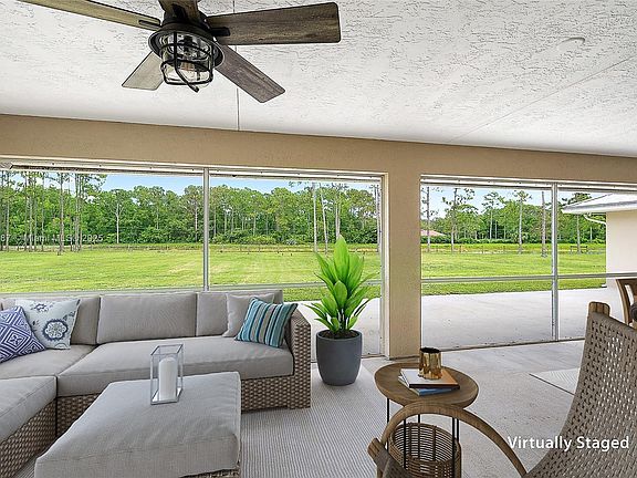 An incredible value in the sought-after Palm Beach Gardens equestrian community of Caloosa, this CBS-built home offers nearly 3,000 sq ft under air, a 2022 metal roof, and a 2018-built 2,000+ sq ft center-aisle barn. The 5-acre fully fenced property provides ample space to add an arena and additional paddocks, making it a versatile choice for equestrian use. The home features a split floor plan, a 702 sq ft garage, and both front and back screened porches. The 2018-barn includes 5 stalls, climate-controlled feed and tack rooms, and multiple turnouts and paddocks. Caloosa community amenities include miles of riding trails, a 32-acre horse park, pickleball courts, playground, and picnic areas, all with low HOA dues. Conveniently located minutes from shopping, dining, and top-rated schools.