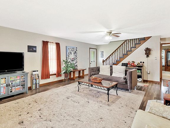 Nestled on nearly 2 acres in the peaceful Haven area, this secluded farmstead offers the perfect blend of country living and modern convenience. Boasting 5 bedrooms and 2 bathrooms, the home features a spacious, finished walkout basement for additional living space. The charming front porch stretches across the entire front of the house, inviting you to relax and enjoy the serene surroundings. Inside, the large kitchen flows into a separate dining room, while a massive living room provides ample space for entertaining or cozy nights in. The master bedroom, located on the main level, comes complete with a walk-in closet and bath. Convenience is key with main-level laundry and plenty of storage throughout. Outside, you'll find a versatile metal garage/barn, an additional carport, and approximately 10x18 storage building equipped with both an overhead and man door. The property is fenced with white vinyl fencing and includes a pasture, making it ideal for farm animals. This property is a rare gem for those seeking space, privacy, and the joys of rural living.