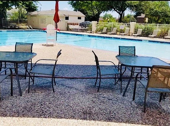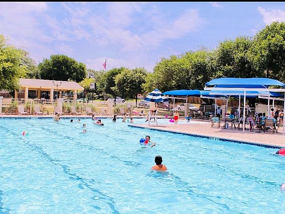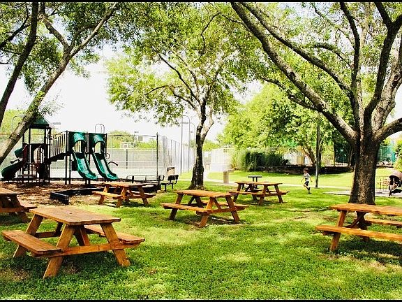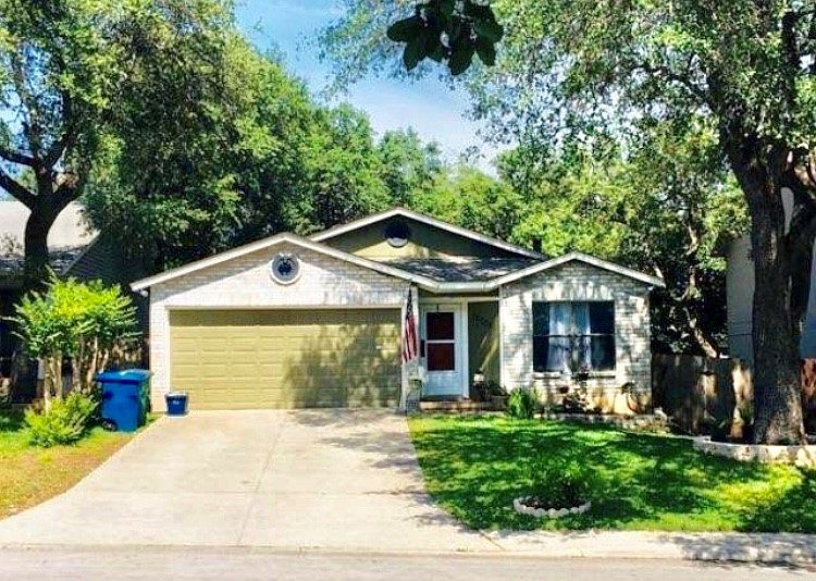 Location, location, location! Open floorplan with personality! Wood laminate floors, den a family room with a cozy fireplace. Spacious kitchen, laundry room, and 2 garages. Master bedroom has walk in closet with French doors exiting to the backyard. Patio slab big enough for a cute bistro table, spot lights on trees. Large, private fenced backyard with mature trees and vegetation. Roof is 3 years old, central air and refrigerator included.