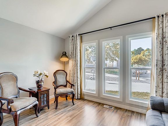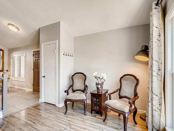 This Thornton home features 3 bedrooms, 3 bathrooms and has a large lot than allows for RV parking, chickens, gardening and more! When you walk up to this house you enter into a patio area between the house and the oversized 3 car garage. Garage is heated and features pneumatics; a mechanic or carpenter's dream come true! The large backyard has plenty of covered area to enjoy during the heat of the day and the backyard has a gate that leads to a path that goes all the way to Golden! The interior of the home has a light, bright living room and kitchen on the main level. Eating area has a large window with plantation shutters. The master bedroom and a secondary bedroom are located upstairs. Downstairs you will find a cozy family room with brick fireplace, bathroom and 3rd bedroom. The basement is finished and has an open concept to allow lots of flexibility with use. Come and see this unique home. Quick access to The Orchard Town Center shopping as well as the Denver Pavillions.