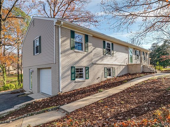 Welcome to this lovely 4 bed/3 bath home, located in the Hidden Valley Estates neighborhood of Chesterfield — this home has a generously-sized lot, w/ a huge paved driveway & a side load garage. Walk in and you'll immediately notice the fresh paint and beautifully refinished hw floors throughout! You'll come into the living room, which has tons of space & natural light, while the dining room offers beautiful crown molding & chair railing. Walk into the newly renovated kitchen and you'll find brand new countertops/backsplash, brand new LVP flooring, brand new oven/stove & dishwasher! Come down the hall and you'll find the 1st of 3 full bathrooms (completely renovated!), along w/ 3 bedrooms, including the primary, which is en-suite (renovated as well!). Down in the basement, you'll find a large living space (w/ wood burning fp), which could be used as 2nd living room — there's a 3rd full bath (also updated), along w/ 4th bedroom. There's a laundry/utility room, which gives you ample storage and an ideal workshop for the builder in the family! Additional updates include; freshly painted interior ('22), newer heat pump ('17), newer siding/windows ('12). Hurry, this one won't last long!